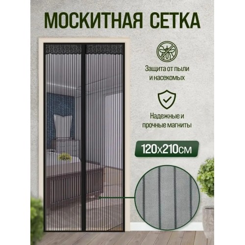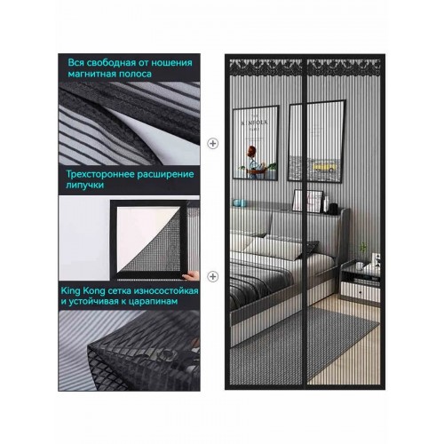 Москитная сетка на магнитах чёрная 120*210 см от мух, комаров и мошек
