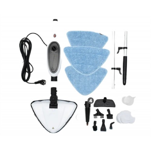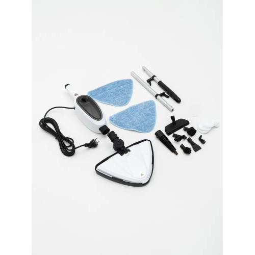 Паровая электрическая швабра 12 в 1 с насадками — это универсальное и эффективное устройство для глубокой уборки дома, которое сочетает в себе пароочиститель и традиционная швабра. Благодаря многофункциональному дизайну и комплекту из 12 насадок, этот электрический паровой пароочиститель идеально подходит для очистки пола, ковров, кафеля, мебели, окон, плитки и даже текстильных поверхностей. Высокотемпературный пар эффективно удаляет устойчивую грязь, пыль и уничтожает до 99% бактерий, обеспечивая более гигиеничную уборку. Многофункциональная паровая швабра обеспечивает удобство эксплуатации: достаточно наполнить резервуар водой, подключить швабру к сети 220В и через короткое время пар готов к работе. Комплект насадок включает щётки, угловые и треугольные элементы, мягкие салфетки из микрофибры и дополнительные аксессуары для чистки труднодоступных мест.