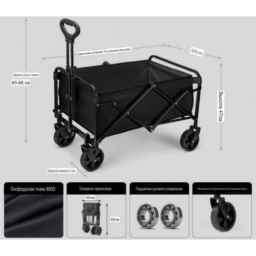 Портативная походная складная тележка для кемпинга 70 х 46 х 47 см