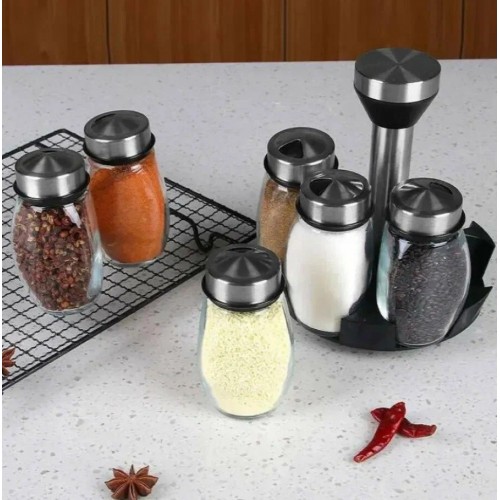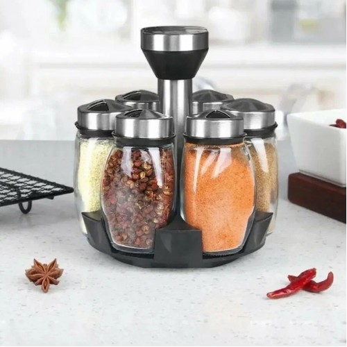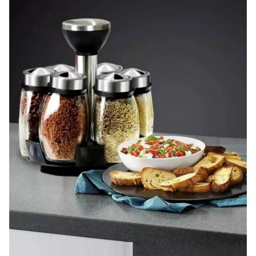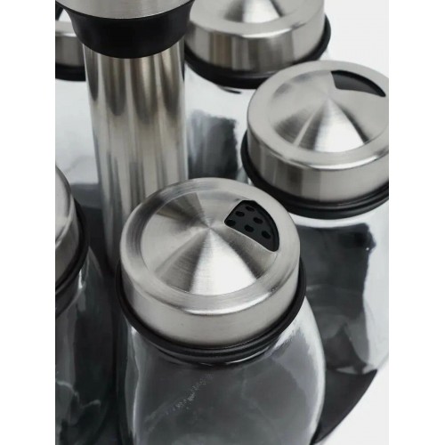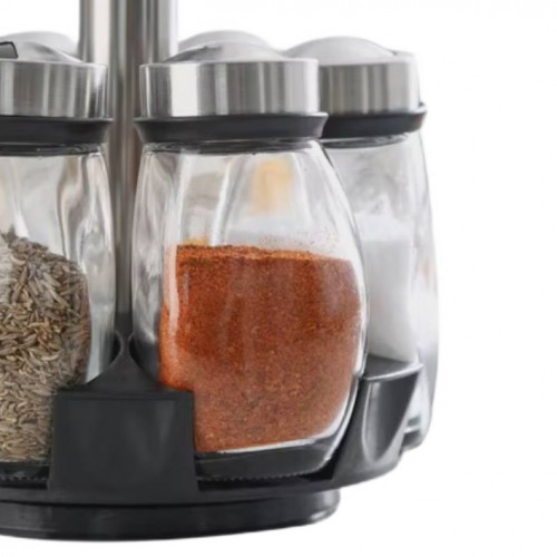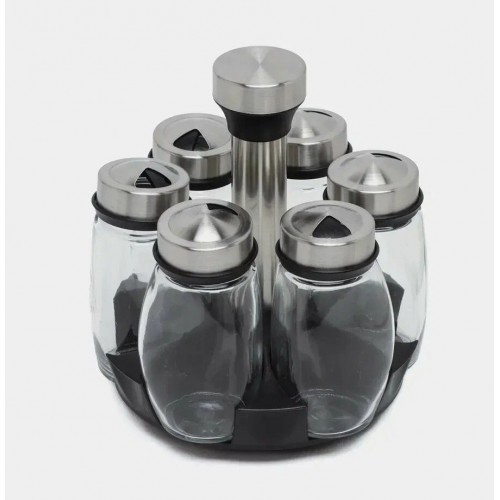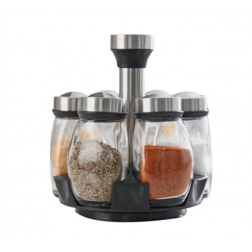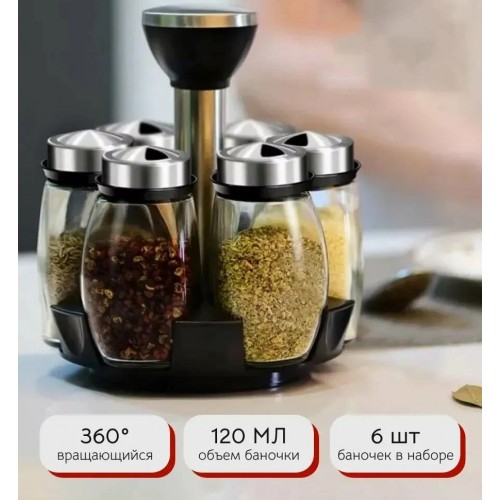 Вращающийся набор стеклянных емкостей для специй на подставке 6 шт